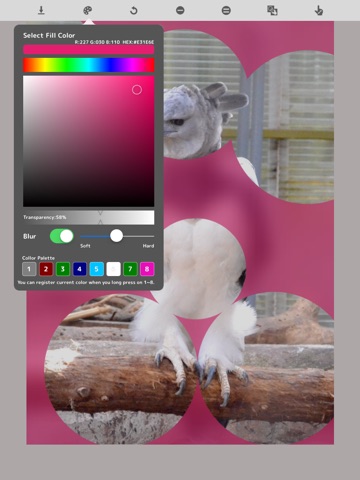 - Fill color is selected from the full color palette. (Support to Transparency)