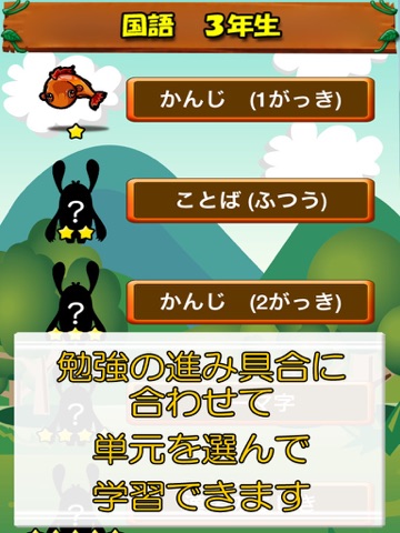 小学校3年生の国語アプリの決定版!小学校での学習の進み具合に合わせて単元を選択し、手軽に、効果的に復習することができます。サクサクと4択で問題を解いていくことができます。(iPad、iPhoneの両方に対応)
