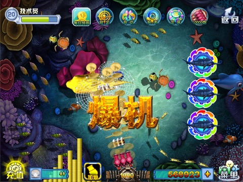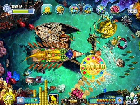 1、《自创技能,轻松秒杀BOSS鱼》:“锁定”:锁定BOSS;“自动射击”:解放双手;“急速射击”:狂轰乱炸;“定屏捕鱼”:万炮齐发;秒杀BOSS不再是梦。
