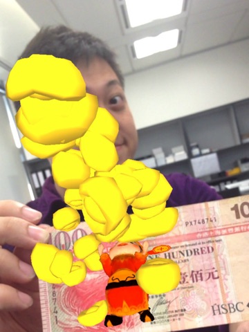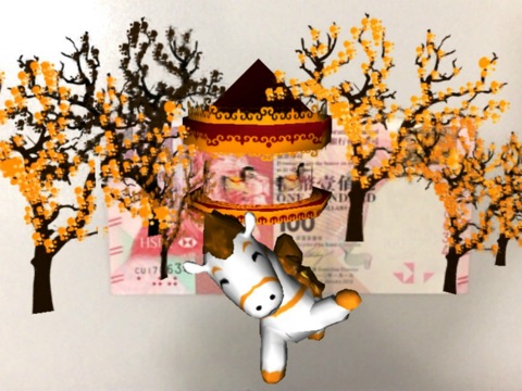 只要你下載應用程式,將鏡頭對準匯豐銀行100 元紙幣或中國人民銀行100 元紙幣,誠心許願,財神或者成功馬就會立即出現跟各位見面拜年!
