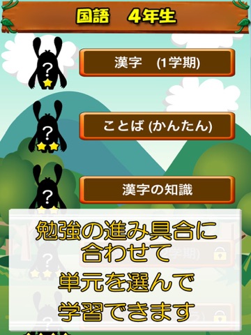 小学校4年生の国語アプリの決定版!小学校での学習の進み具合に合わせて単元を選択し、手軽に、効果的に復習することができます。サクサクと4択で問題を解いていくことができます。(iPad、iPhoneの両方に対応)