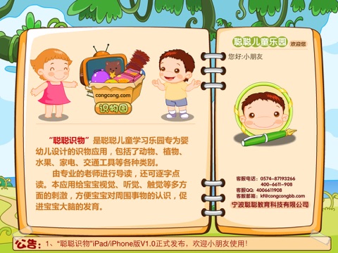 “聪聪识物”是聪聪儿童学习乐园专为婴幼儿设计的识物应用,包括了动物、植物、水果、家电、交通工具等各种类别。由专业的老师进行导读,还可逐字点读。本应用给宝宝视觉、听觉、触觉等多方面的刺激,方便宝宝对周围事物的认识,促进宝宝大脑的发育。