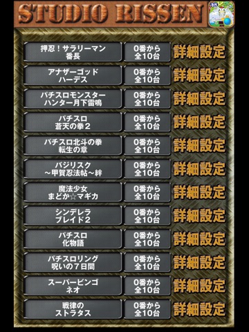 『詳細設定』をタップすると機種、台番号、台数を設定する画面に移行します。