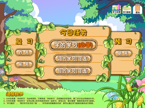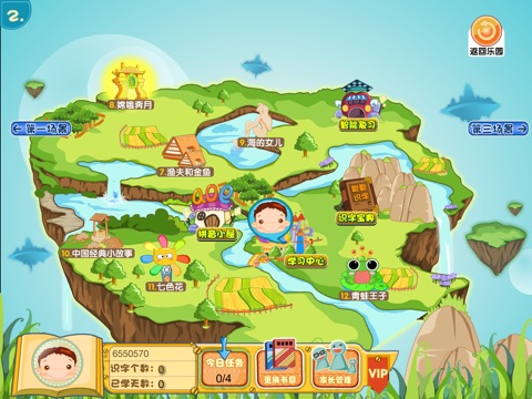 ◆ 四大主场景,24个经典儿童故事为学习背景,360个与儿童故事情节相关的识字游戏。