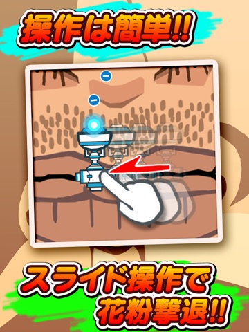 ◆プラズマ・イオン砲から発射されるマイナス・イオン弾で次々に襲来する敵(アレルゲン)を迎撃せよ。襲来する敵が鼻の穴を狙って続々侵入してくるぞ。侵入を許せば、あっと言う間にクシャミ連発!憎っきアレルギー鼻炎の発症だ。
