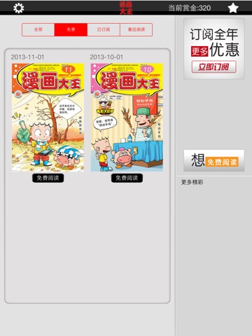《漫画大王》月刊创刊于1996年,是中宣部“5155动画工程”重点刊物,也是人民美术出版社品牌动漫期刊。它刊载多种风格和类型的原创幽默漫画,办刊18年来,品牌影响力深远,受到全国小读者的追捧和喜爱,拥有数十万粉丝。 《漫画大王》作为国内权威的动漫出版平台携手一流漫画家倾情打造的原创动漫大刊,集爆笑、时尚、资讯、互动于一身,一刊在手,站在动漫最前沿,感受漫画最IN快乐,身心智慧全面提升。