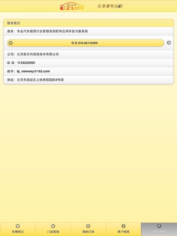 易租汽车租赁管理系统,中国汽车租赁行业管理软件第一品牌,集保障租赁车辆安全、规避租赁业务风险、高效业务办理、方便财务核算、规范企业管理与一身,实现了汽车租赁行业全业务流程的信息化管理。易租车应用产品让您的企业花最少的投入,快速拥有先进的网络化订车平台,并为您提供全套租车信息化解决方案!