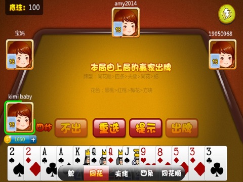 5. 智能出牌系统: 游戏也会有智慧, 支持手势操作超智能选牌(滑动), 点击屏幕牌面重选, 一指定天下。