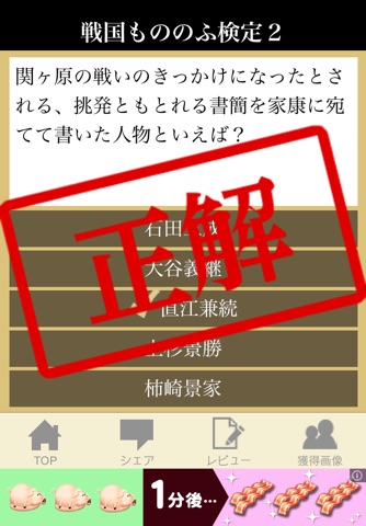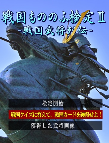 総問題数1000問以上!歴史5択問題、15問中8問以上正解(正解率50%以上)で日本の名将カード(画像)を獲得!