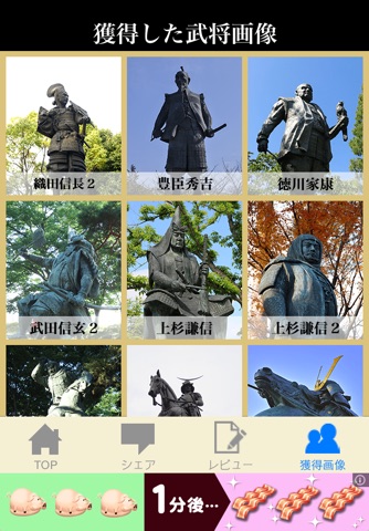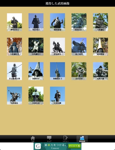 ※武将カードを全部そろえると日本の名将たちの銅像写真集が出来上がります!