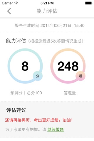 【能力评估】智能化能力评估报告,在你每次做题后,我们都会更具你的做题成绩提供学习建议,让你接下来的学习更有方向。