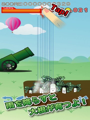 雲をタップし、雨を降らせて大根を育てよう!