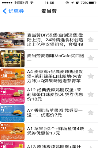 收集麦当劳、德克士、星巴克、真功夫、永和大王等手机优惠券,只需要在柜台点餐时出示就可以享受优惠!