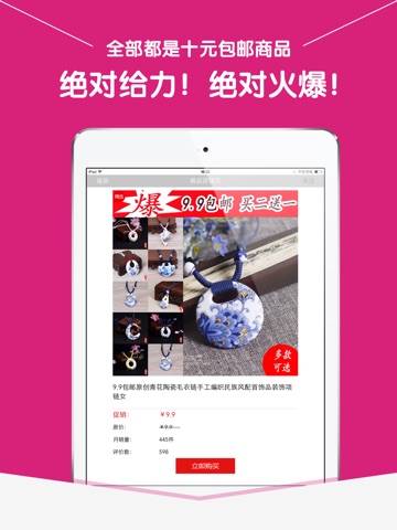 十元包邮汇集全网十元以内包邮商品,涵盖了服饰、时尚、鞋包、美食、居家等超值商品,每天更新最新商品,赶紧下载应用,准备开抢吧。