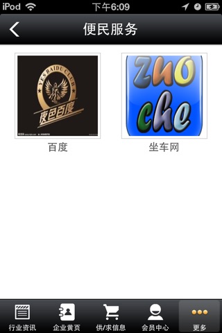 【会员中心】:注册会员可以通过手机端发布供/求信息,或查看其他用户的供/求信息,含一键拨号功能。
