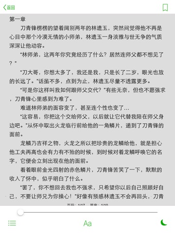 ●全屏阅读、书签收藏、智能记忆上次阅读位置、白天/夜间等最符合书友阅读习惯的贴心设计。