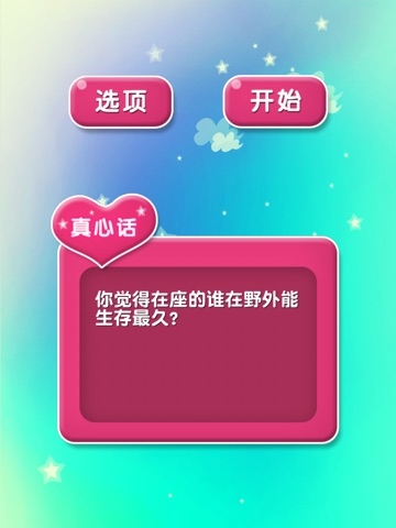 最美真心话大冒险,包含2000道精选题库,并不断更新,只为给您最好的体验!