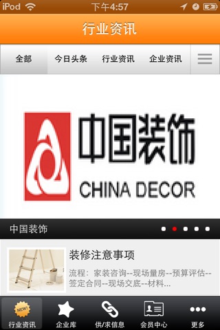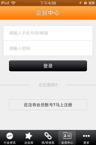 【会员中心】:注册会员可以通过手机端发布供/求信息,或查看其他用户的供/求信息,含一键拨号功能。