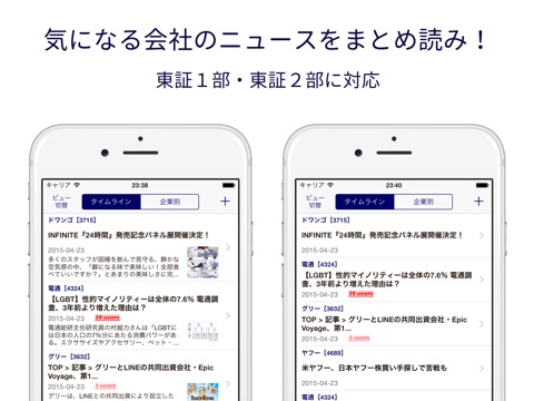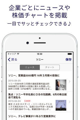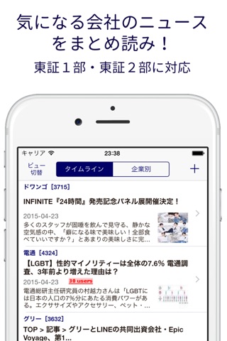 自分の見たい企業のニュースがパッと見れる