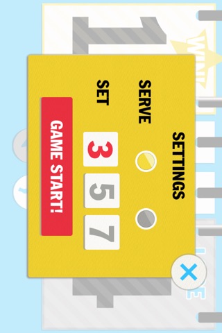 矢印マークの戻るボタンで操作のやり直しができます。またタイムボタンで進行中のタイマーを止めることができ、閉じるボタンを押せばタイマーが再開します。セッティングの画面でサーブ権、ゲーム数を設定でき、プレイしやすくなっています。