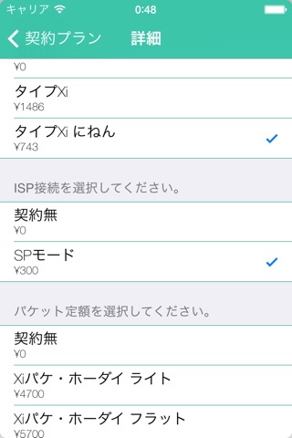 キャリア、料金プランを登録することで、毎月の料金や、例えば1年後のトータル料金や収支などが自動計算され、確認することができます。