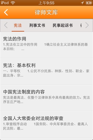 【律师文库】:本应用利用列表的形式清晰的展示出各种法律法规的讯息。