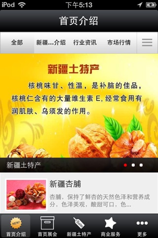【首页介绍】:图文并茂展示新疆土特产-收藏、分享、评论功能。