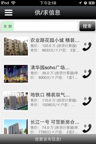【供/求信息】:本应用利用列表的形式清晰的展示出各种产品的最新详细讯息。