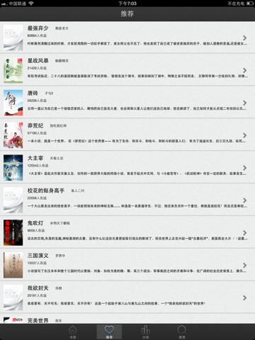5、最热作品,玄幻,修仙,都市,言情,官场,穿越,同人,耽美,校园,军事,总裁,武侠,网游,历史,奇幻,灵异,推理,莽荒纪,大主宰,绝世唐门,完美世界等网络小说。