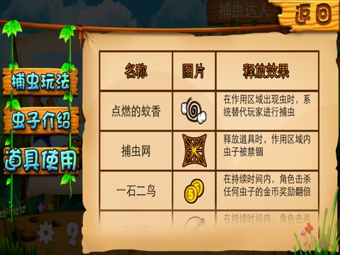 《捕虫达人2》是一款2D新风格的休闲游戏。画面采用森林题材,让你在游戏之中感受大自然的清爽;经典滑动捕虫操作、即开即玩模式让你随时随地可以享受游戏带来的乐趣。