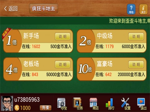 目前游戏支持最流行的“疯狂斗地主”玩法,相当有趣刺激。