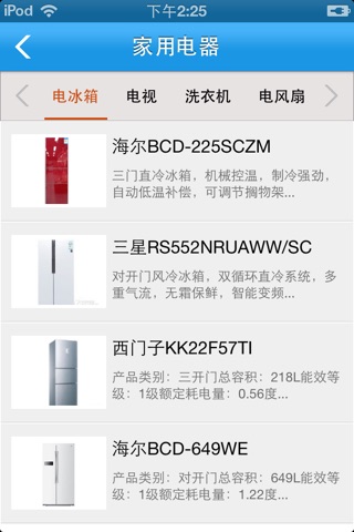 【家用电器】:本应用利用列表的形式清晰的展示出各种家用电器的讯息。