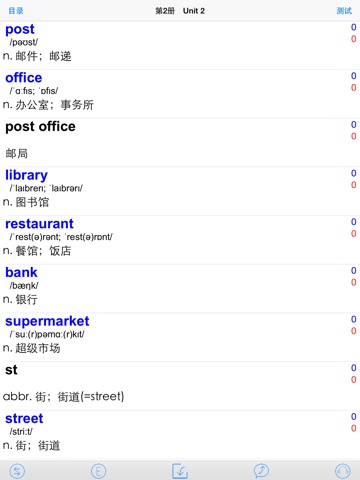 每个单词均有测试成绩记录(蓝色数字为做对次数,红色数字为做错次数),单词掌握情况一目了然。