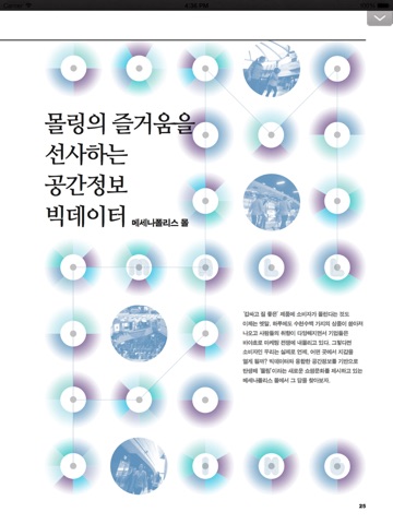 한국 공간정보산업의 현황과 미래 성장 가능성 등을 심도 있게 짚어보는 기획특집(Big Issue), 정부, 학계, 산업계 등의 리더들을 만나 공간정보 분야의 최신 동향과 전망을 제시하는 인터뷰, 국민생활에 편익을 주는 현장을 찾아 공간정보산업의 새로운 가능성을 소개하는 칼럼 등을 제공함으로써 창조경제 시대의 핵심 산업으로 떠오른 공간정보산업에 대한 다양한 시각을 제시하는 앱 매거진입니다.