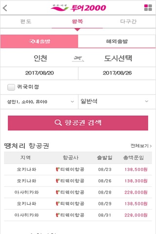 투어이천 모바일 서비스를 통하여 언제 어디서나 최저가 항공권을 예약에서 발권까지 가능