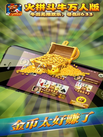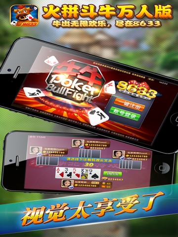 火拼斗牛是湖北佬游戏中心推出的特色好玩斗牛游戏。本游戏是一种简单却又非常有意思的棋牌游戏,最早起源于我国广东、广西和湖南三省,是一款地方性十足、游戏速度极快、刺激而惊险的棋牌游戏。牛牛棋牌游戏可以同时供2--6人玩,主要是采用一副扑克牌其中的52张(除去大小王);第一局的庄家是随机产生,而后每局的庄家是上一轮游戏中的赢家,每局游戏系统自动洗牌后将5张牌均匀分给给各位玩家。玩家拿到牌后根据一定的游戏规则进行排列组合,庄家和闲家依次进行大小比较从而决定胜负。