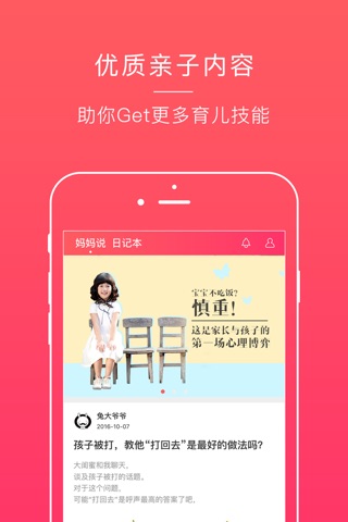 平台专注于提供优质的亲子育儿内容、成长记录工具,帮助父母提升亲子关系和育儿技巧。在这里,你可以和全国各地的妈妈一起交流亲子育儿技巧,还可以与权威专家、亲子达人一起共同成长。