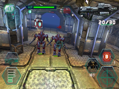 利用移动设备陀螺仪来瞄准敌人,触碰移动设备屏幕上的按钮开枪、换枪、丢手雷、装弹等操作,游戏前进途中需要及时获得武器与生命的补给。游戏一共有5关,顺利通过当前关卡就会开启下一关。