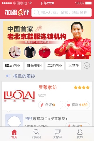 加盟点评给创业人群提供了最专业的加盟指导,为中国庞大的创业人群提供创业项目选择、投资风险分析、市场营销指导、创业经验分享等全面的创业需求服务,让创业者通过专业指导充分优选项目。现在只要登陆加盟点评客户端,您就能及时浏览招商项目的信息,创业快捷又方便。