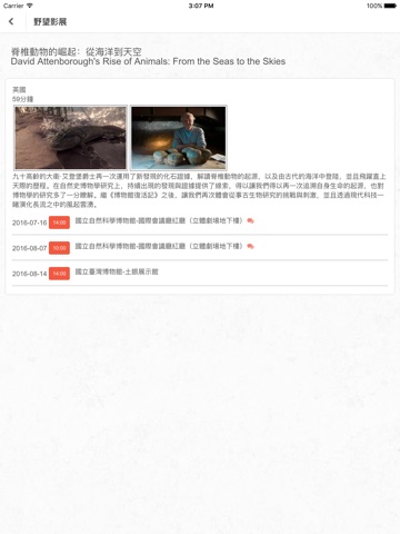 2. 時間表:依照您需要的收看時間,提供即時播映時間及地點,並可加入您的行事曆進行提醒。