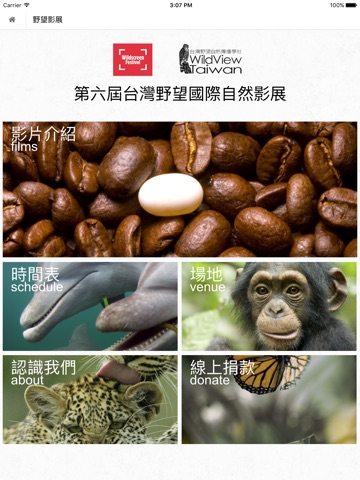 台灣野望國際自然影展係由社團法人台灣野望自然傳播社以及英國「綠色奧斯卡」Wildscreen影展合作,每年引進20部全球頂尖的生態環境得獎紀錄片,巡迴全台為期一年。本App將及時提供您最新的影片內容介紹、播映時間及地點,以便就近觀賞,不會錯過任何一部精彩作品。