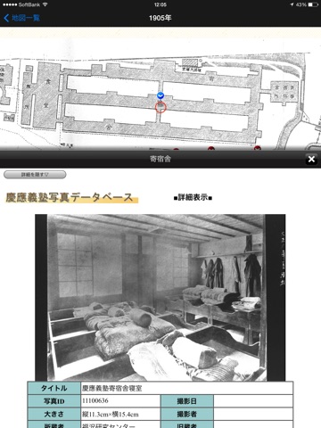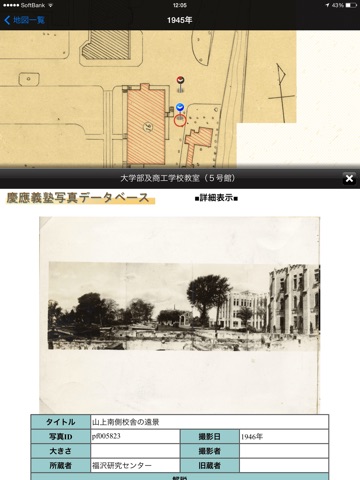 「慶應時空ぷらっと」では、モバイル端末のGPSやwifi機能をオンにすることで、あなたが今いる場所が過去の地図(plat)に表示され、まるで昔のキャンパスをめぐり歩くような気分になれます。地図上のランドマークをタッチすると、その場所で撮られた古写真とその解説が表示されます。昔の地図と古写真を片手にぷらっと散歩しながら、塾員の皆さまはどのような記憶を思い出されるでしょうか。初めてキャンパスを訪れた方々はどのような出来事を想起なさるでしょうか。キャンパスを巡るお一人お一人にとっては、「歴史実践」のためのアプリにもなるはずです。