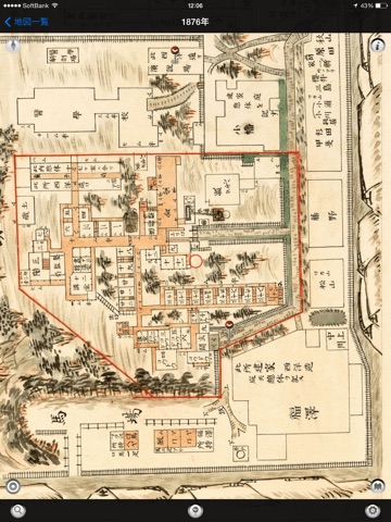 * 古地図とGPS情報を対応づけており、古地図上に現在地を表示します。