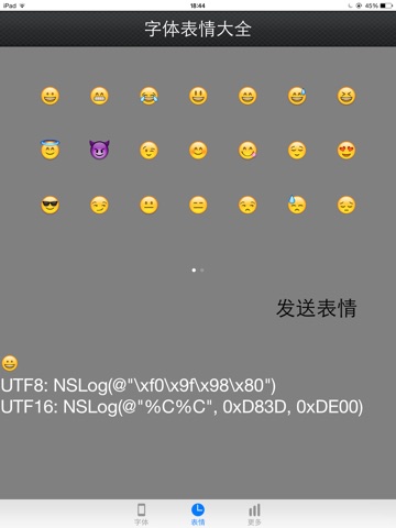 另外,本应用也展示了系统自带表情的UTF16编码以及UTF8编码格式,可以让开发者快速解析相应的Emoji表情信息,从而对于Emoji能有更好的支持。