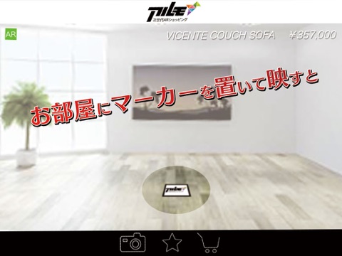 3.カメラでマーカーをかざすと商品イメージがカメラ画像に合成されて表示されます。