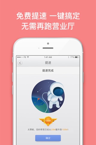 1.享受宽带网速极致提升,免费提速最高可达100M;