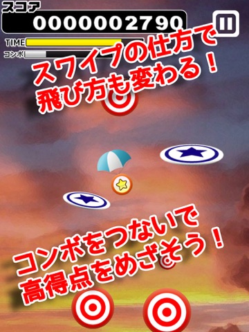 スワイプしてディスクをふわりと飛ばし、浮かんでる的に当てていこう!