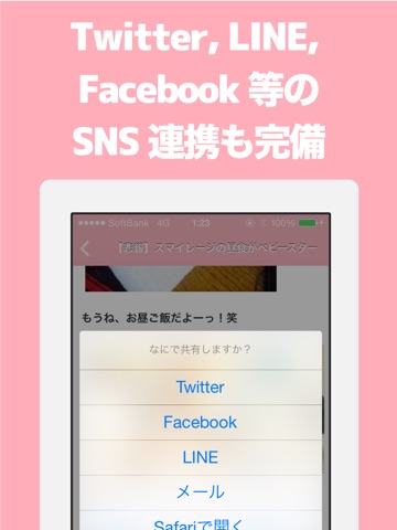 Twitter, Facebook, LINE等のソーシャル連携も万全!どんどんシェアしよう!