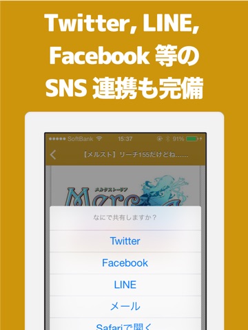 Twitter, Facebook, LINE等のソーシャル連携も万全!どんどんシェアしよう!