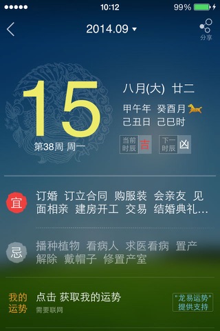 以中国风的方式。将黄历、周易、缘分、万年历等传统元素巧妙地与天气结合。